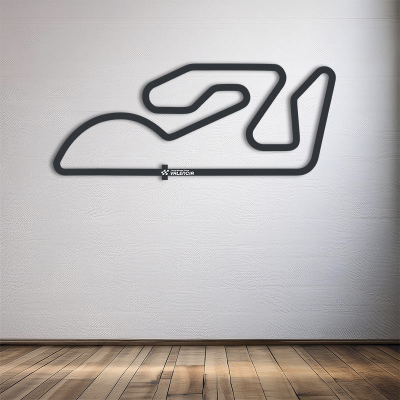 Réplica del circuito de motociclismo Circuit Ricardo Tormo de Valencia realizado en madera DM de 5 mm. recortada con láser y pintada en color negro.
