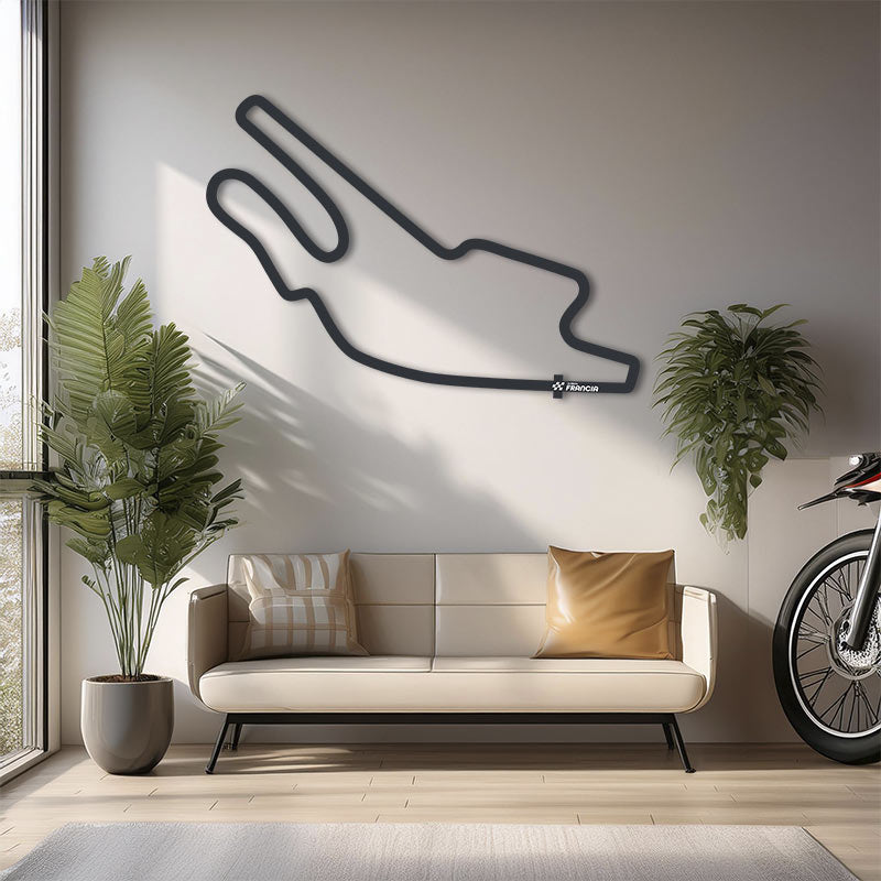 Réplica del circuito de motociclismo Le Mans de Francia realizado en madera DM de 5 mm. recortada con láser y pintada en color negro.