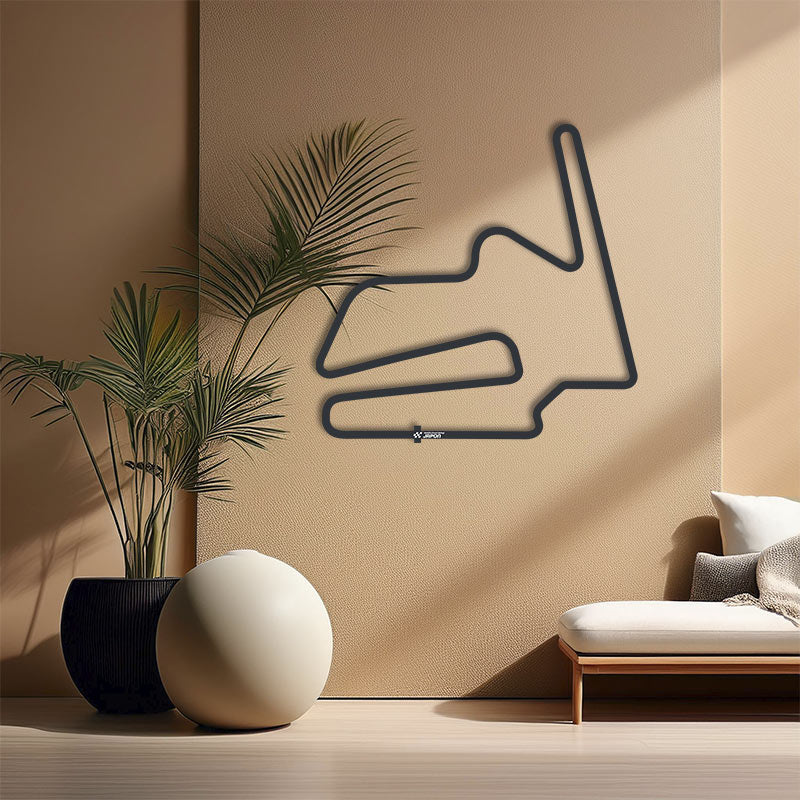 Réplica del circuito de motociclismo Mobility Resort Motegi de Japón realizado en madera DM de 5 mm. recortada con láser y pintada en color negro.