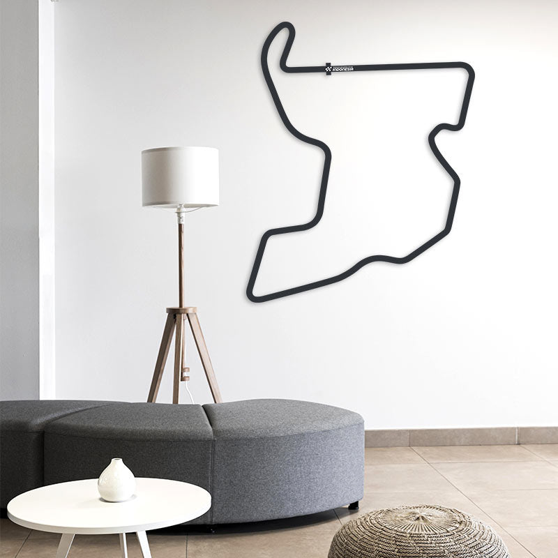 Réplica del circuito de motociclismo Pertamina Mandalika Circuit de Indonesia realizado en madera DM de 5 mm. recortada con láser y pintada en color negro.