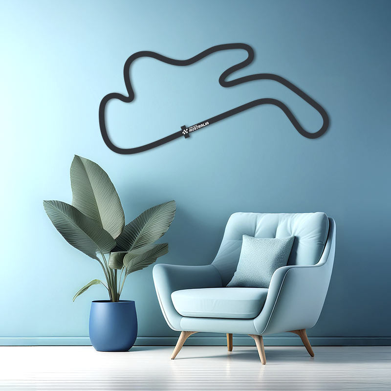 Réplica del circuito de motociclismo Phillip Island de Australia realizado en madera DM de 5 mm. recortada con láser y pintada en color negro.